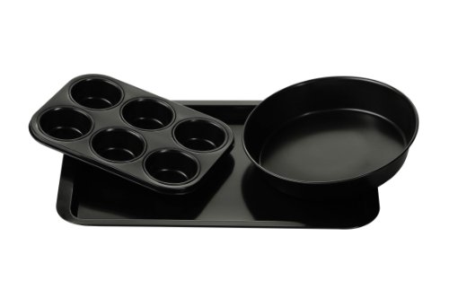 Premier Housewares 0.4 mm 3-Piece Non-Stick Bakeware Set includes Muffin Tray/ Round Tin/ Tray