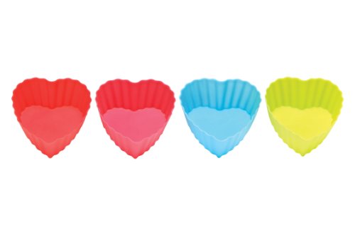 Premier Housewares Heart Non-Stick Silicone Moulds, Set of 4, Assorted Colours