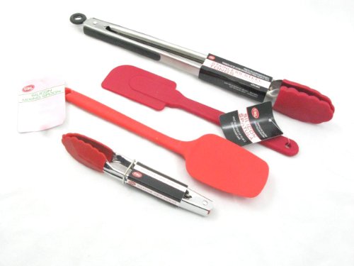 Assorted RED Silicone / Silicon Bakeware Set 4 Pieces (PINKWEBSHOP) ( Spatula, Tong, Mixing Spoon, Mini Tong)