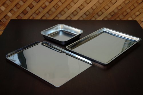 Our quality, hard to find, Polished Stainless Steel Home Naturals Bakeware Set is a healthy choice for baking breads, cakes, cookies, and your favorite desserts. If you do not feel like baking, use this set for storing, cooking or just displaying your own creations. Full sides all around these pans also allow you jelly rolls, fudge, candy, cakes, pies and cookies, not to mention pizza. All pieces are made of extra heavy gauge surgical stainless steel. Originally designed for professional chefs, this Home Naturals Cookware/ Bakeware set has a hand-polished 18/10 stainless steel cooking surface that won't react with food. Always choose 18/10 Stainless Steel when cooking for yourself and your loved ones. This set does not leek into yo