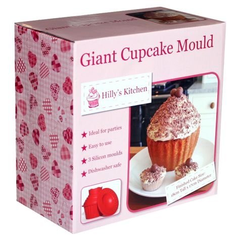 Here we have a superb giant cupcake mould this set allows you to make extra big cupcakes. It's easy to use and it has 3 silicon moulds for you to get creative in the kitchen. It's Dishwasher safe and heat resistant to 500 f, non-stick and easy release. This big top cupcake bake set is perfect for any occasion and includes a top mould, bottom mould and removable inserts. Size dimensions: Lid W 17cm x H 9cm, Base W17cm x H 9cm. Total height is 18cm.
